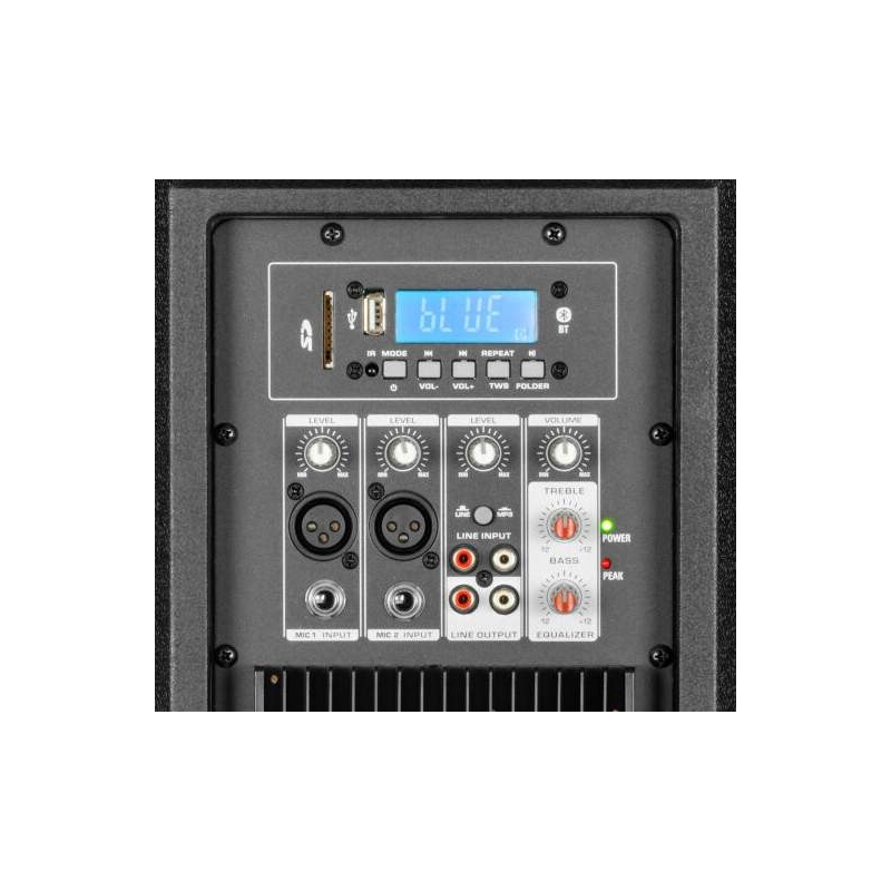 12" 2-pásmová aktívna plastová reproduktorová sústava IBIZA. Má vstavaný zosilňovač triedy D. Obsahuje vstupy: 1xMIC (XLR/jack6,3mm), 1xLine (RCA/jack6,3mm), 1x Line (2xRCA). Výstupy: 1x Line out (2xRCA). Sústava má vstavaný USB/SD/MP3