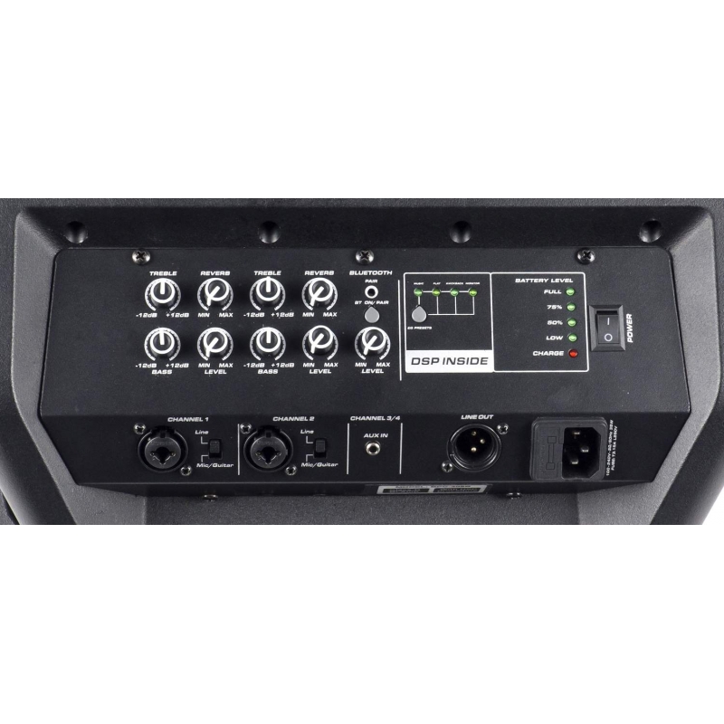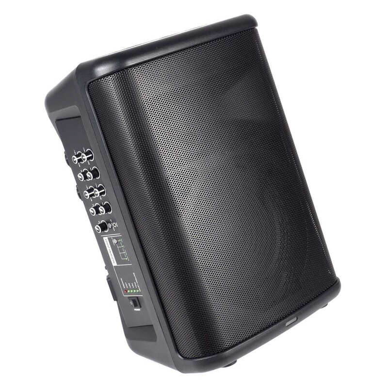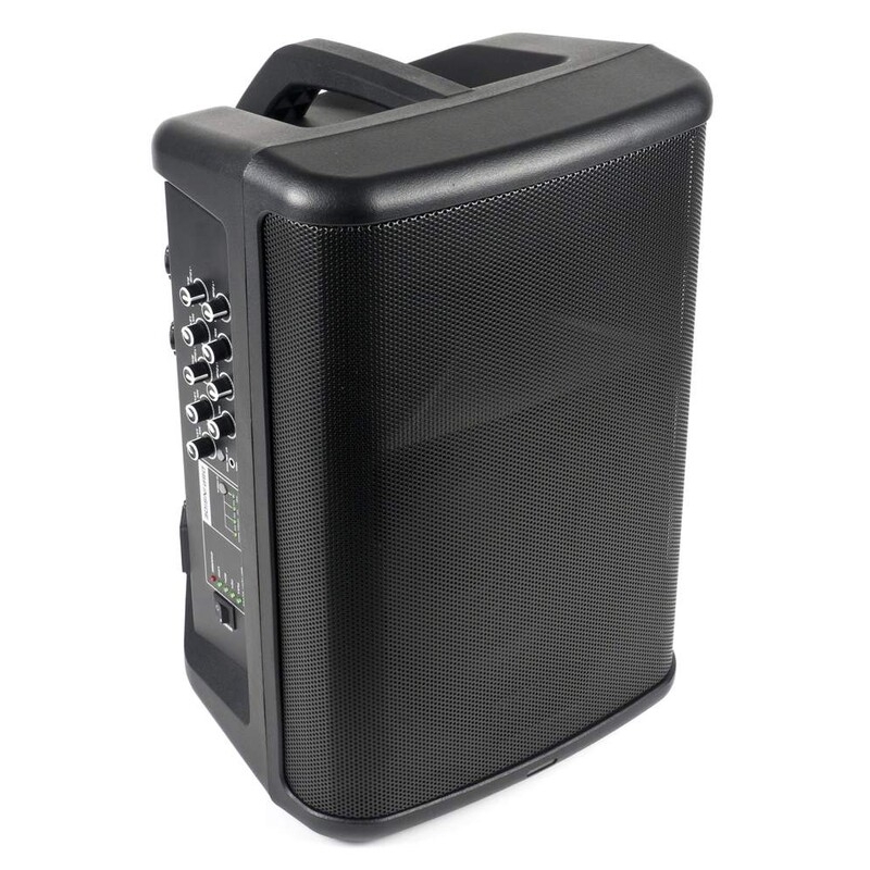 Univerzálna prenosná aktívna reproduktorová sústava. Obsahuje vstavaný digitálny Bi-amp zosilňovač s výkonom 100W RMS a Li-ion batériu 18,5V/2,2Ah. Plastová ozvučnica je osadená 8" basovým reproduktorom a 1" výškovým reproduktorom. Sústava má vstavaný DSP procesor a Bluetooth prehrávač s funkciou TWS. Má 2 univerzálne vstupy Line/Mic-guitar (XLR/jack6,3mm) so samostanými 2-p. korekciami, efektom, reguláciou hlasitosti, prepínačom vstupnej citlivosti, 1 stereo AUX vstup (jack3,5mm) a 1 symetrický linkový výstup (XLR). Vstavaný DSP procesor so 4 presetmi. Reprosústavu je možné umiestniť na stojan s priemerom 35mm, alebo aj na zem ako aktívny odposluch nastojato aj naležto.
