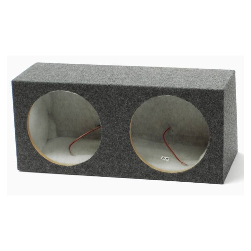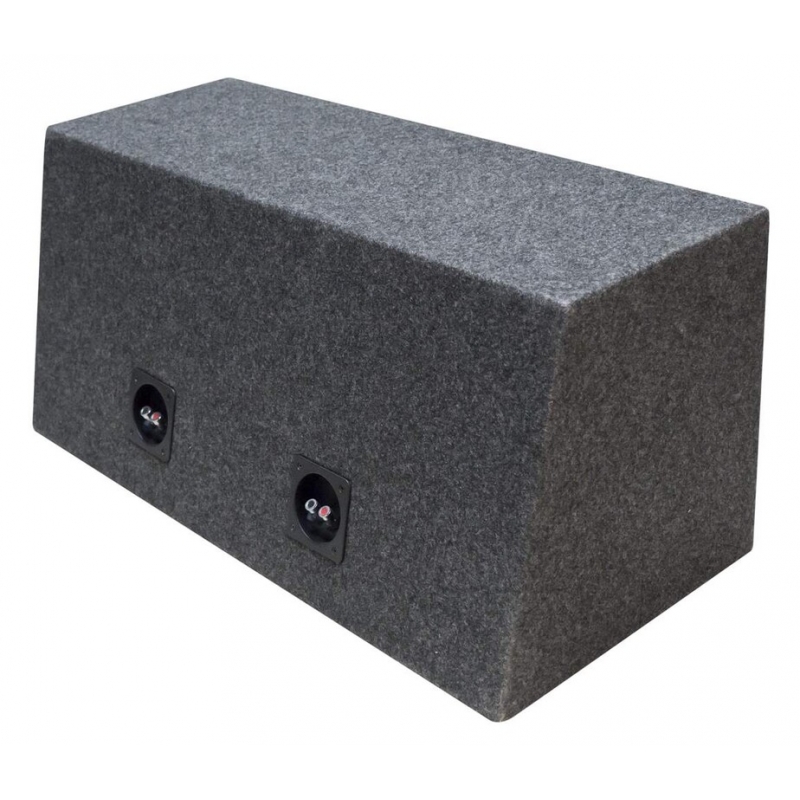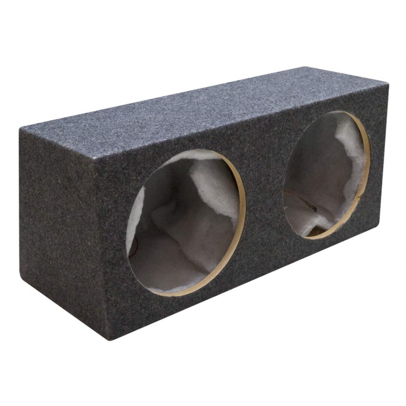 Neosadený subwooferový box pre dva 12" reproduktory vyrobený z MDF materiálu, je vytlmený, potiahnutý šedým kobercom, má terminál a kabeláž. POSLEDNÝ KUS SKLADOM