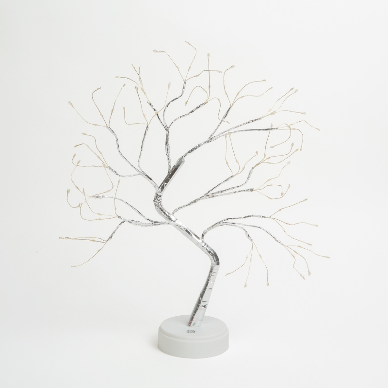 S touto LED dekoráciou na stôl môžete vytvoriť magickú atmosféru každý deň v roku. Trblietavý kmeň stromu rozptyľuje svetlo vyžarované teplými bielymi LED diódami umiestnenými na koncoch konárov a vytvára v miestnosti úžasnú atmosféru. Vďaka LED technológii má nízku spotrebu energie, vďaka trom AA batériám nie sú žiadne káble, dá sa jednoducho umiestniť kdekoľvek. Dá sa jednoducho zapnúť a vypnúť pomocou dotykovej plochy zabudovanej v podrážke.