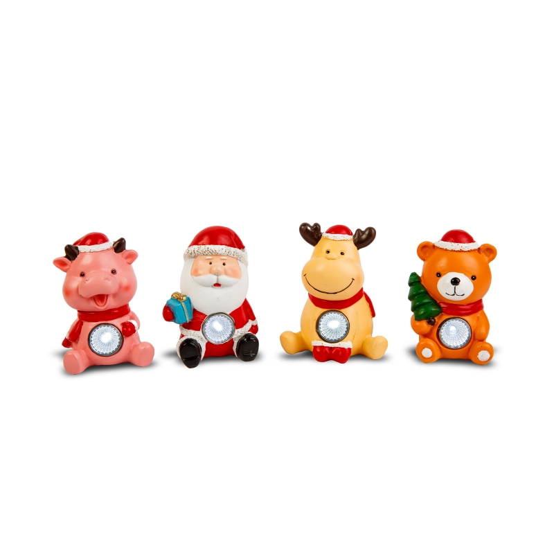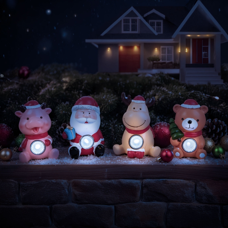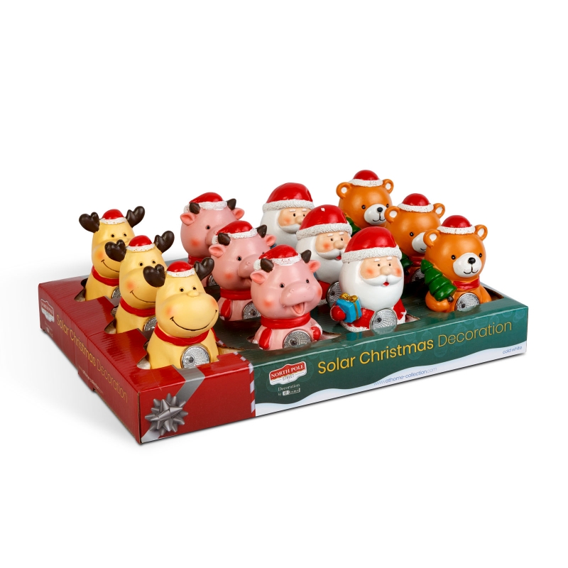 Atmosférická vianočná dekorácia, ktorá s veselými figúrkami vyčarí úsmev na tvári! Solárna dekorácia svieti studeným bielym LED svetlom, ideálna na parapet, do kvetinovej alebo skalnej záhrady. Dostupná v štyroch roztomilých prevedeniach: sob, medvedík, Mikuláš a prasiatko. Počas dňa sa batéria nabíja pomocou vstavaného solárneho panelu, večer sa automaticky zapne a svieti.
