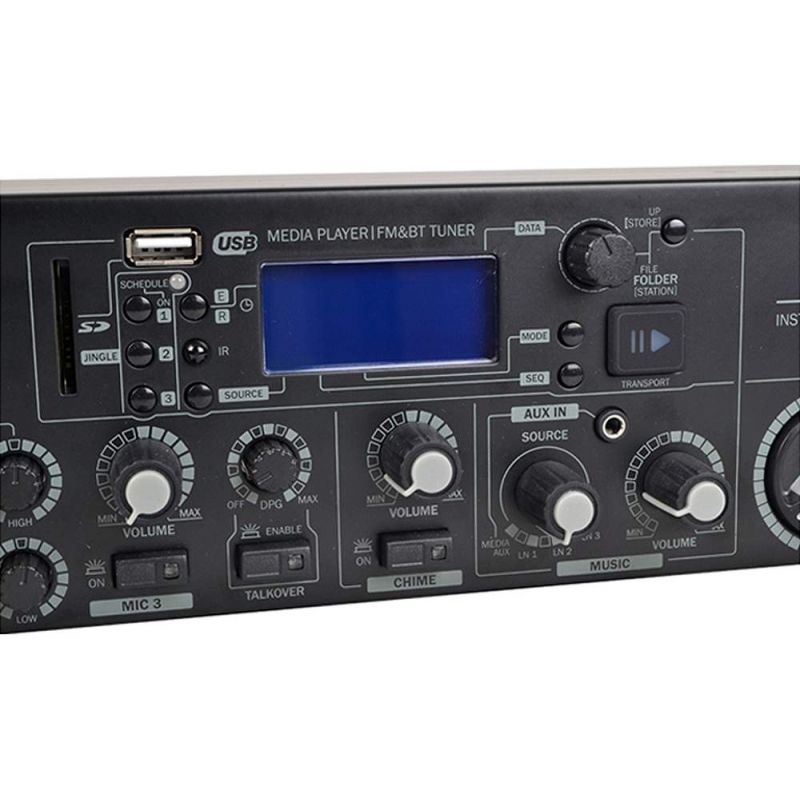 Kvalitný stereo zosilňovač s možnosťou zapojenia ako 2-mono zóny. Má zabudovaný FM tuner s RDS a USB/SD/MP3 a Bluetooth prehrávač s displejom a diaľkovým ovládaním (podporuje USB/SD do 16GB max 2000 skladieb). Obsahuje 3 stereo linkové