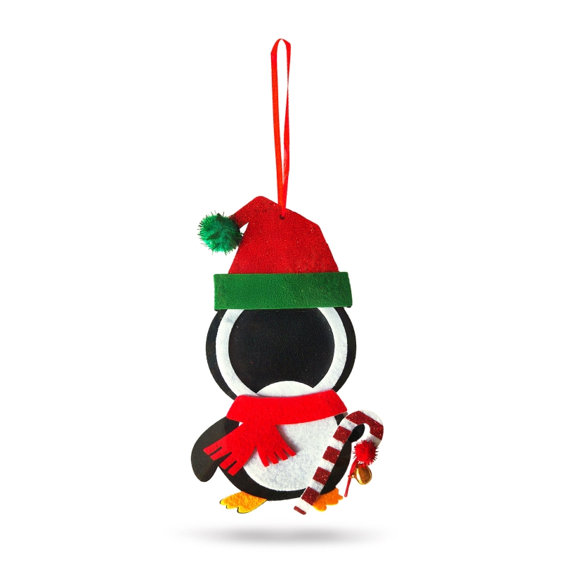 Oživte svoj domov s touto veselou vianočnou dekoráciou z plsti! Dostupná je v troch variantoch – perníková figúrka, Mikuláš a tučniak. Vďaka svojmu milému vzhľadu a cinkajúcemu zvončeku vytvára sviatočnú atmosféru v každej miestnosti. Vďaka pútku ju ľahko zavesíte na dvere, okná, vianočný stromček alebo aj na darček. Vyrobená z ľahkého, mäkkého materiálu, takže je bezpečná aj pri zdobení s deťmi.