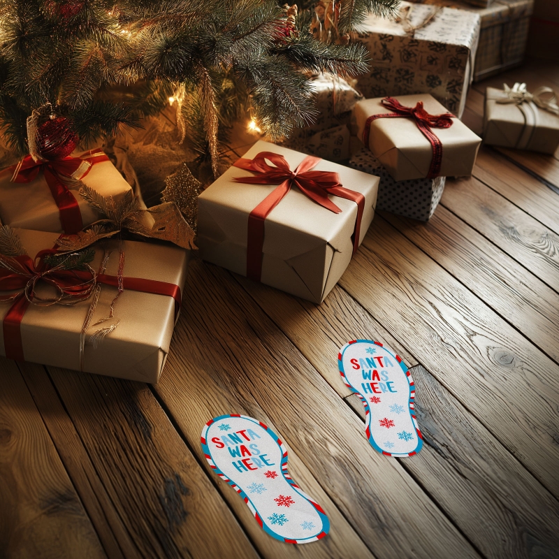 Urobte sviatky ešte magickejšími s touto veselou nálepkou „Tu bol Mikuláš“! Balenie obsahuje 2 samolepiace stopy s rozmermi 25 x 10 cm, ktoré hravou formou pripomínajú návštevu Mikuláša.Samolepku je možné jednoducho umiestniť na podlahu, dlažbu alebo dokonca na koberec, čím poskytne deťom nezabudnuteľné prekvapenie. Veselá kombinácia červenej, modrej a bielej farby spolu so snehovými vločkami vytvára sviatočnú atmosféru v každej domácnosti.