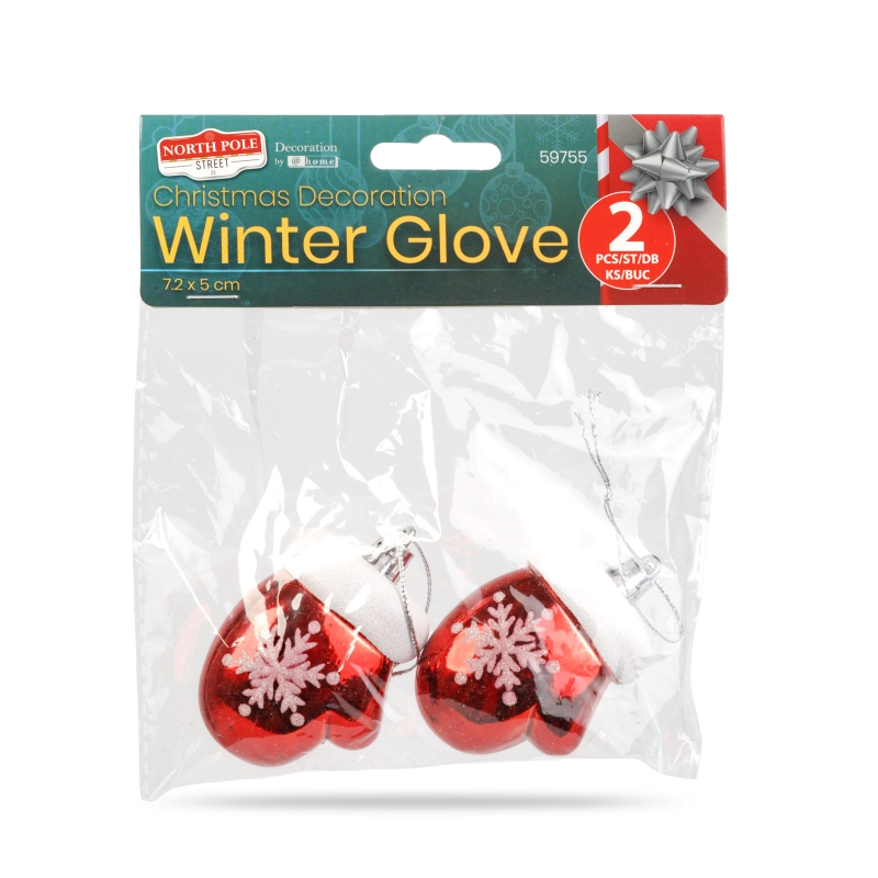 Oživte svoj vianočný stromček touto roztomilou zimnou vianočnou ozdobou v tvare rukavíc! Lesklé červené ozdoby so vzorom snehovej vločky a trblietavým bielym lemom dokonale zapadnú do sviatočnej atmosféry. Balenie obsahuje dve vianočné ozdoby, ktoré sú vďaka zlatému háčiku ľahko pripevniteľné na stromček, veniec alebo inú vianočnú dekoráciu. Trblietavý povrch a elegantné spracovanie zaručene oživia vašu domácu výzdobu.
