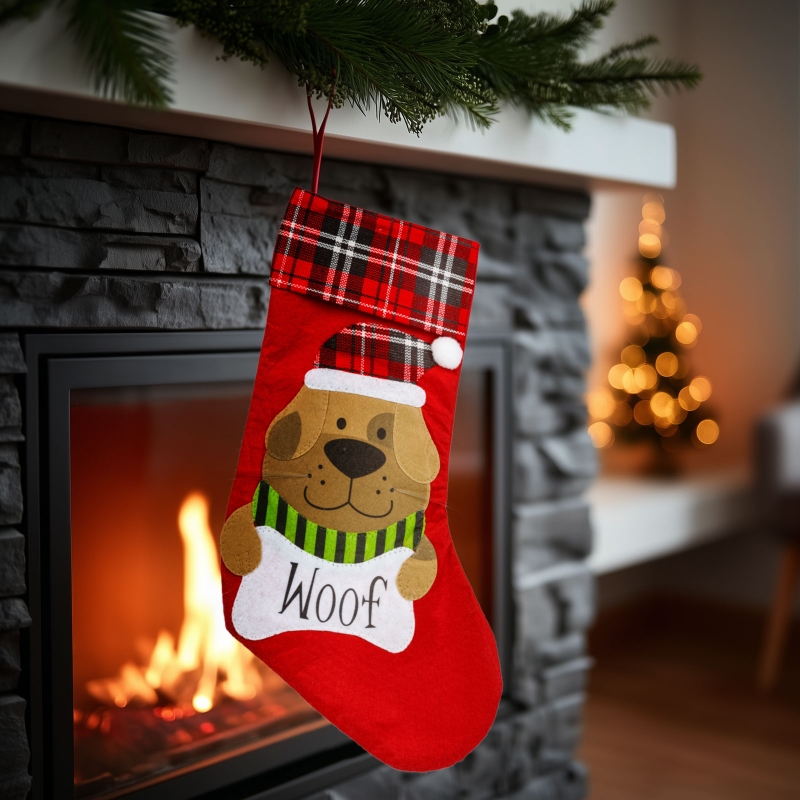 Tento ozdobný vianočný ponožkový vak je skvelým doplnkom pre milovníkov zvierat. Domáci miláčikovia by nemali chýbať pri vianočnom ošiali a dekoráciách. Táto ponožka s motívom psa je ideálna na uchovanie maškŕt, menších hračiek a prekvapení, takže ani váš psík nepríde skrátka!