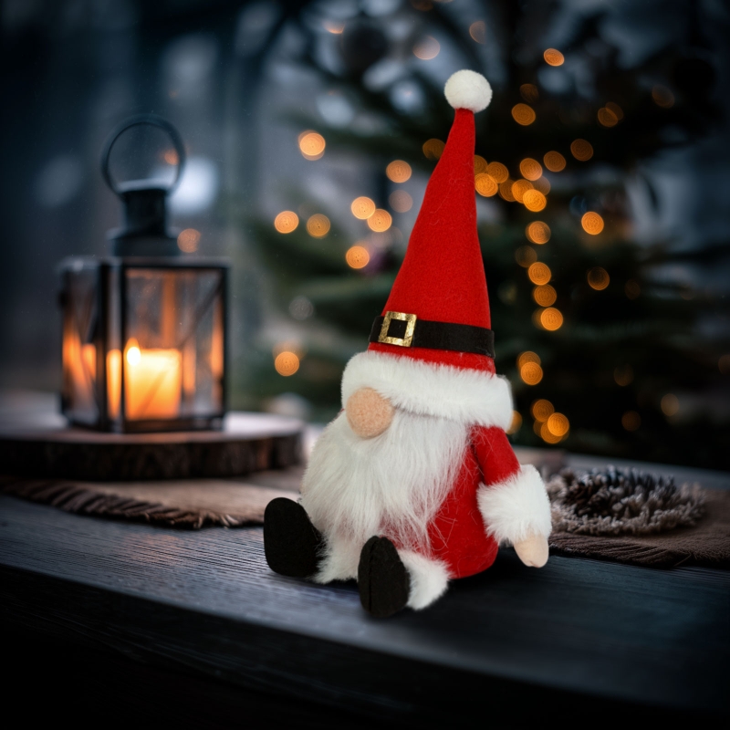 Ozdobte svoj domov touto roztomilou vianočnou škriatkou! Postavička vyrobená z jemného plyšového materiálu s dlhým červeným klobúkom, huňatou bradou a milým vzhľadom je ideálnym doplnkom vianočnej dekorácie. Je to skvelá voľba na poličku, kozub alebo aj ako darček pre vašich blízkych.